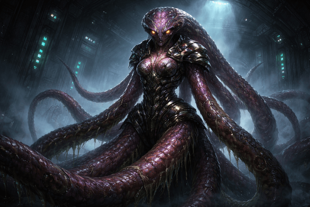 “I don’t think the diplomats would mind if we take that one. Look at her shoddy armor – rubber-like skin, she would have resided near the top of their oceans, it is so cheap that even humans could almost 3-D print it. We would cut her up proper.”